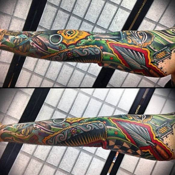 Finger and hand tattoos are not enough for these individuals. Identifying as a freemason is something that many men (and some women given the more modern approach to the practice and following) are passionate about. This makes their ability to commit to either half a sleeve or full-sleeve altogether an easy decision. Pieces in this section range in style, colour usage, and all-around narrative, but all pertain to the various concepts of freemasonry.