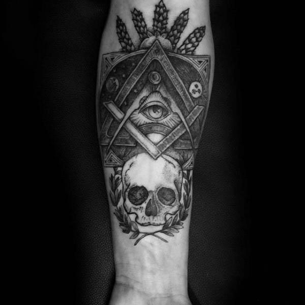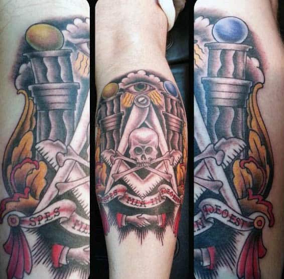 Common ingredients for a handsome masonic tattoo include pyramids, eyes and compasses. Skulls are also incorporated with at least some regularity. Meditative figures are sometimes featured as well, and they are usually a central element when included. Overall, there is ample room for variation, but the requirements are strict to meet the actual standards of masonry.