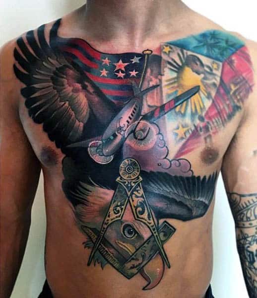 4. Full Back/Chest Masonic Tattoos
