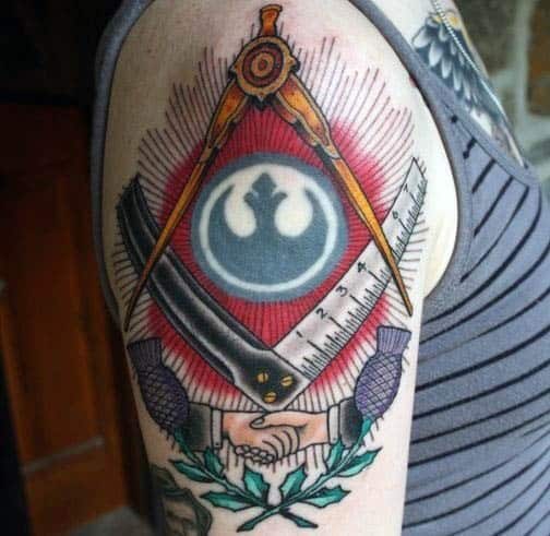 Some men also like masonic tattoos as a way for them to explore the darker aspects of Western society. There is definitely an academic bent to those who seek these tattoos without possessing any personal affiliation to the legendary groups. Because these clans have established a mythical status in society, their ink designs are bound to stir a major reaction in everyone. To honor deceased family members, masonic prints are often combined with a family’s coat of arms.