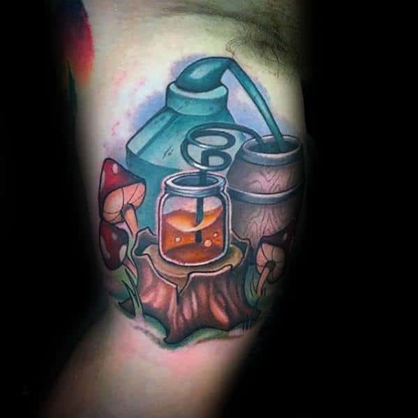 Pay homage to hallucinations with a psychedelic mushroom tattoo. Even before Alice in Wonderland, mushrooms were known for their perspective shifting properties and these examples don’t hold back. Consider dark purple or red colors to give the mushroom tattoo an evil or poisonous vibe.