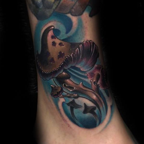 Include another side of life into your mushroom tattoo with a member of the animal kingdom. Whether you’re adding mushrooms as a side piece to a larger image like the third piece or going for a more natural depiction of the wildlife on the Earth’s floor, there is unlimited potential.