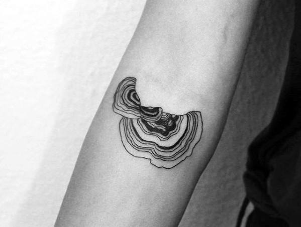 For a cute mushroom tattoo to bring you good look, consider the simple line and dotwork style of the second piece, whose minimalism makes for the perfect little addition. Or if you prefer the style of scientific illustrations, exhibit a small assortment like the first piece. I adore the linework on the third piece depicting a Turkey Tail. What’s especially neat about that piece is that the name of the mushroom comes from the meaning of having several colors, while the piece itself utilizes black ink and is still able to convey the fluidity of the mushroom.