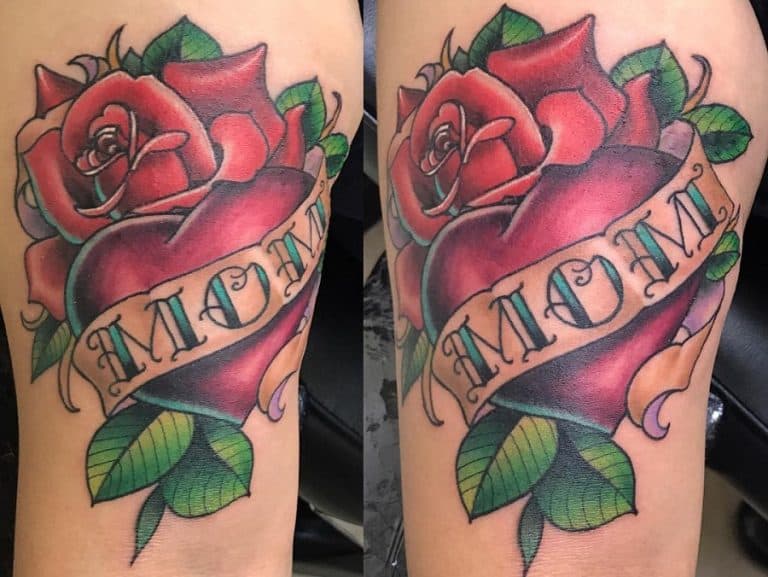 A classic American traditional design is a heart tattoo with a banner over it that says “mom” to depict a person’s devotion to their mother. Mom heart tattoos were made famous by Norman “Sailor Jerry” Collins and the artists of yesteryear. The old school tattoo style is usually done simply in bold black or the limited color palette of…