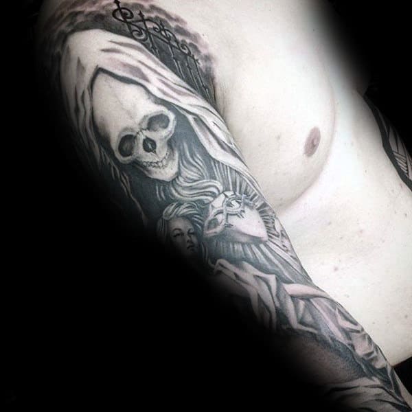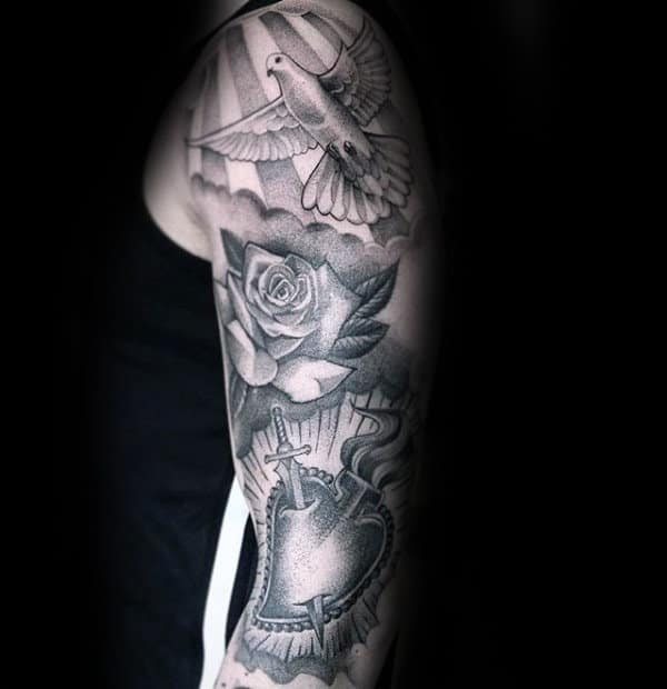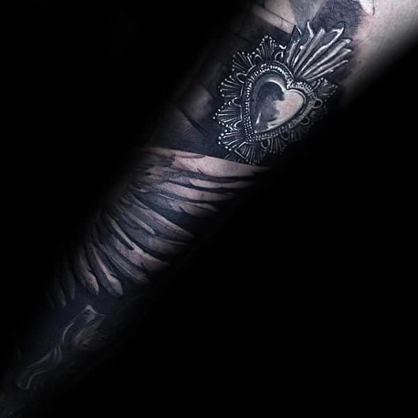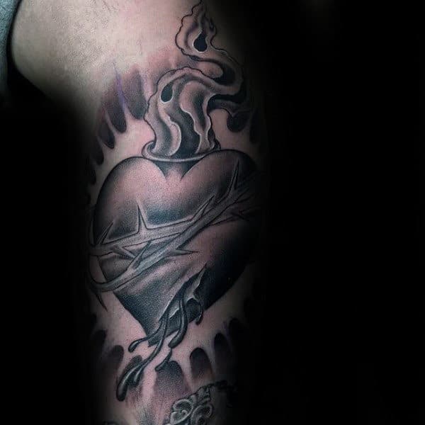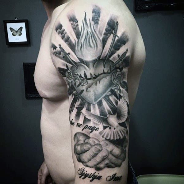 5. Traditional Black and Gray Sacred Heart Tattoos
