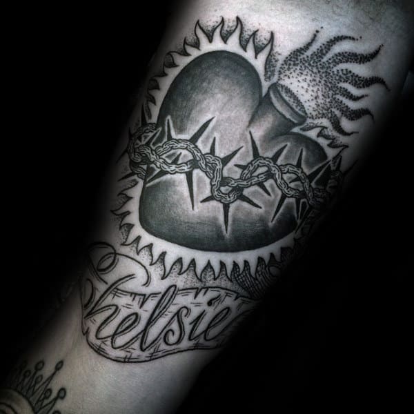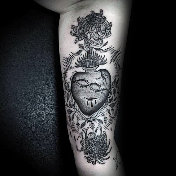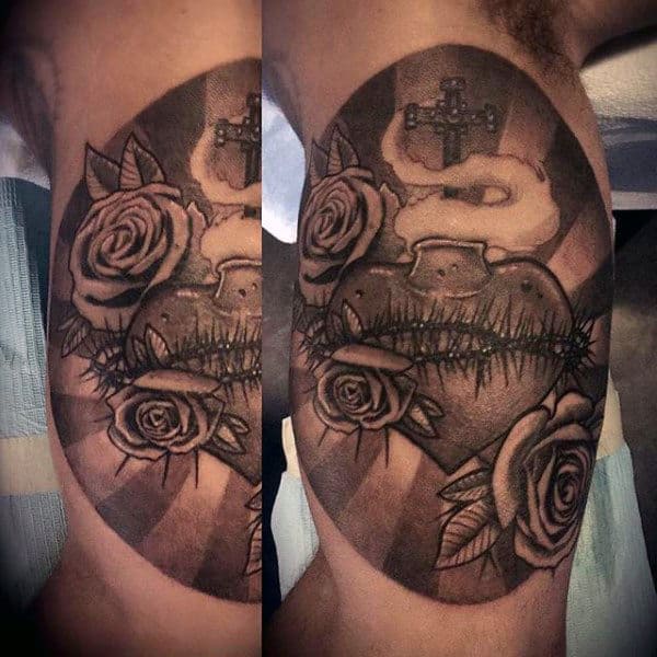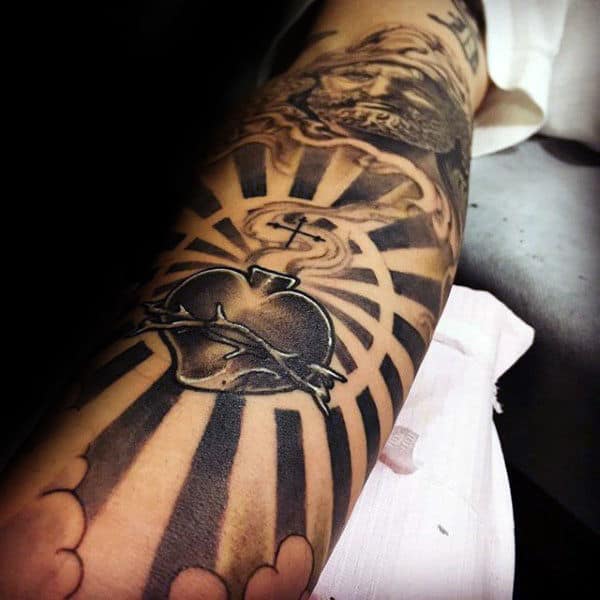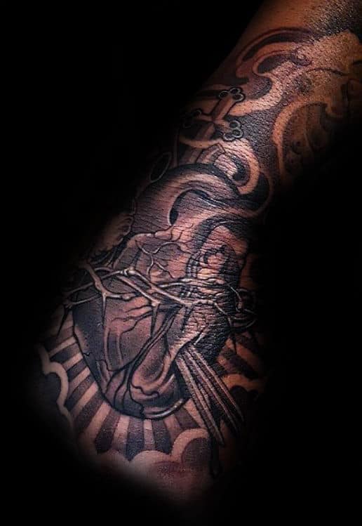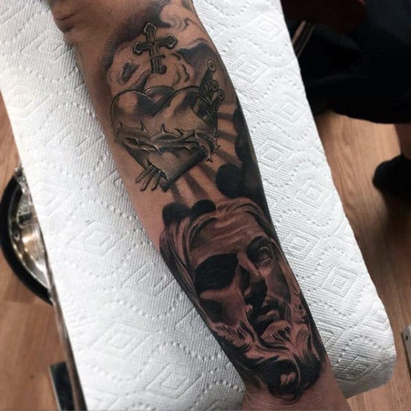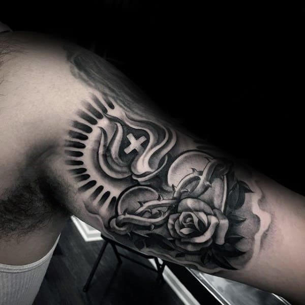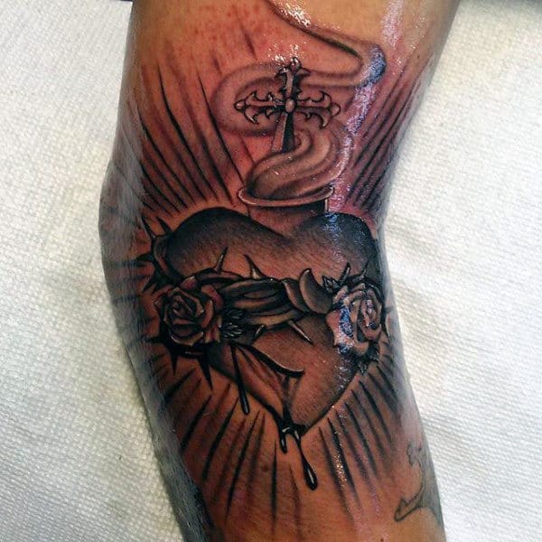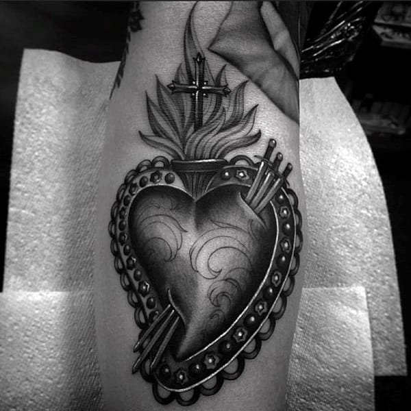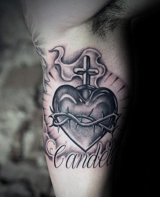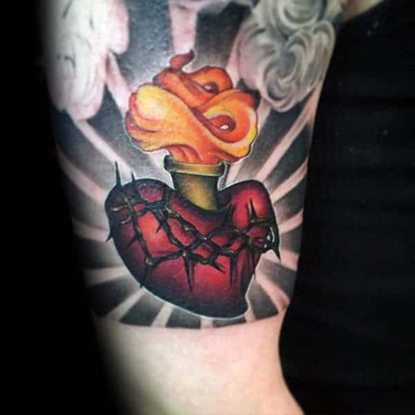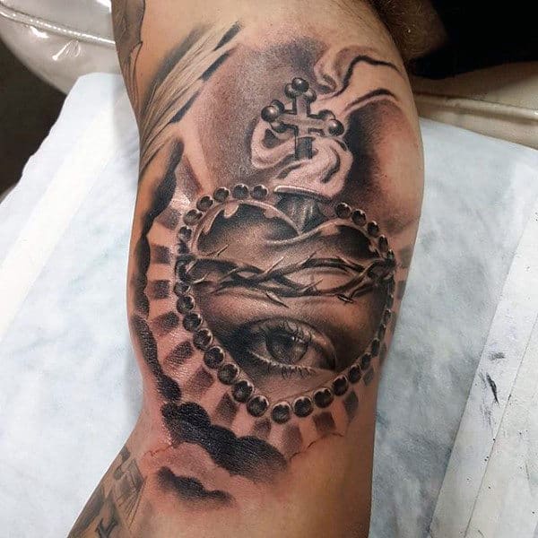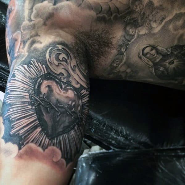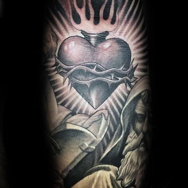 4. Sacred Heart Tattoos With Added Religious Symbolism