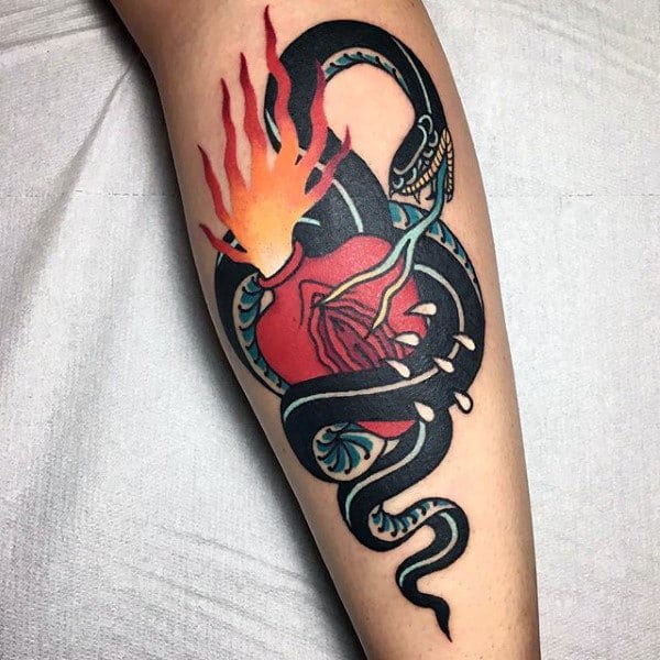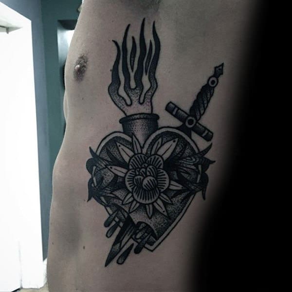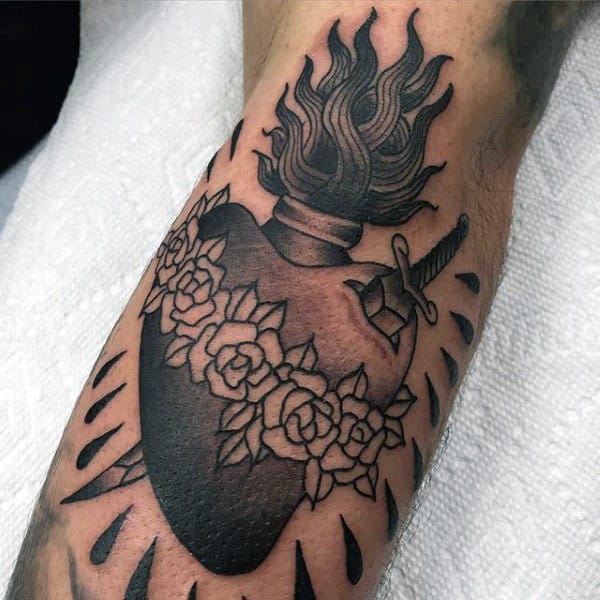 The sacred heart is not a frivolous piece of pop art. It’s well suited to the traditional style and since it’s such an old and revered symbol there’s not necessarily a need to get creative with it. Sometimes simple and traditional is best. If you simply wish to honor your religion, then opting for the original symbol in black and gray is an excellent approach to take.