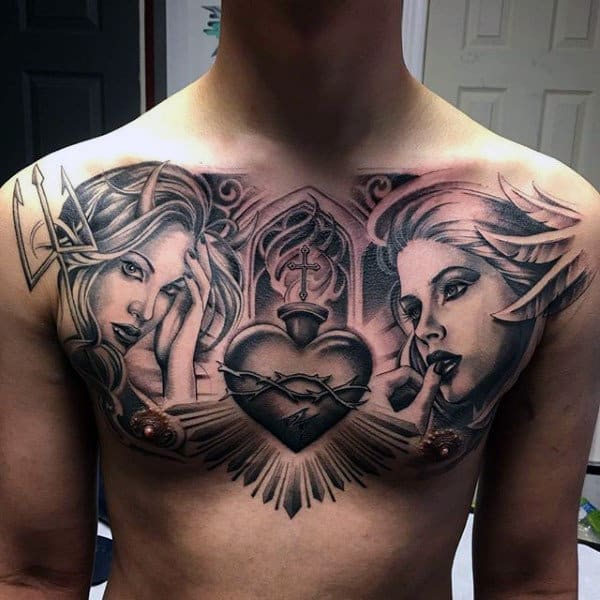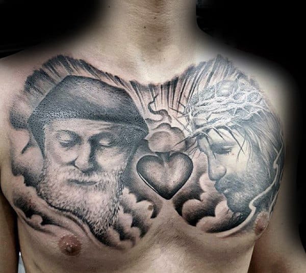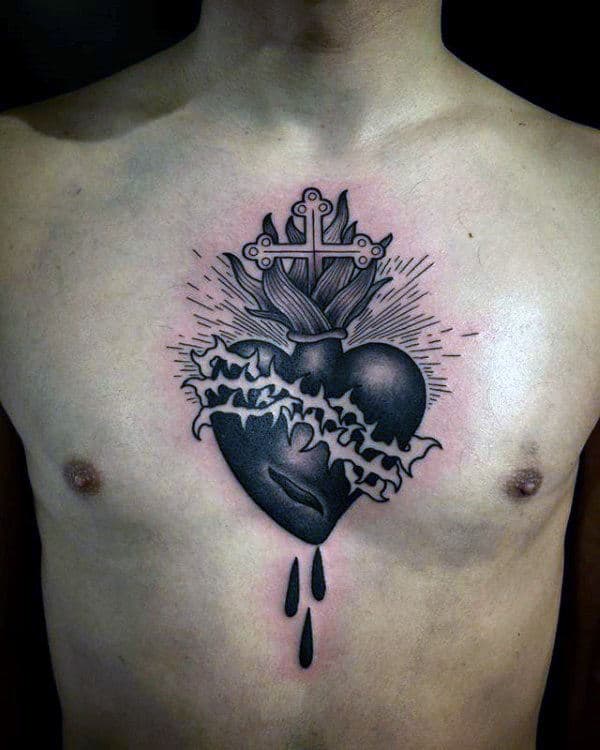 After the sleeve the chest fights it out with the back for the best piece of canvas for a large tattoo. That said, not all chest pieces need to be big. The fact that it’s the physical location of the heart makes it well suited to a sacred heart as either standalone or centerpiece.