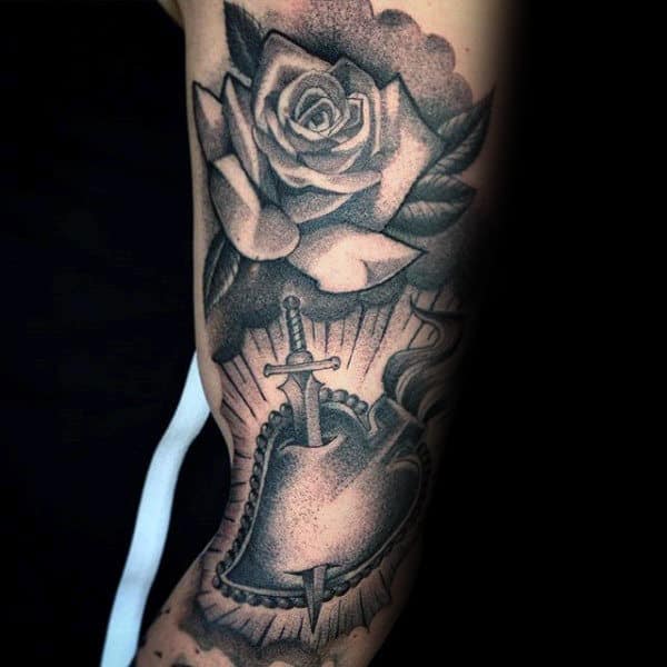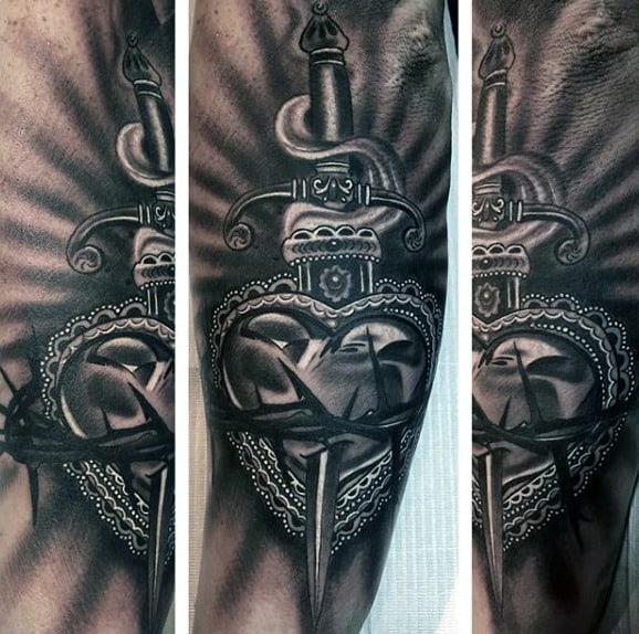 Not all sacred heart with dagger tattoos are the immaculate heart of Mary, but if you feel a connection to the Virgin Mother then this is a great choice. That said, adding daggers in any form to the sacred heart will have the same meaning: suffering and sacrifice of the crucifixion melded with the unending love for mankind.
