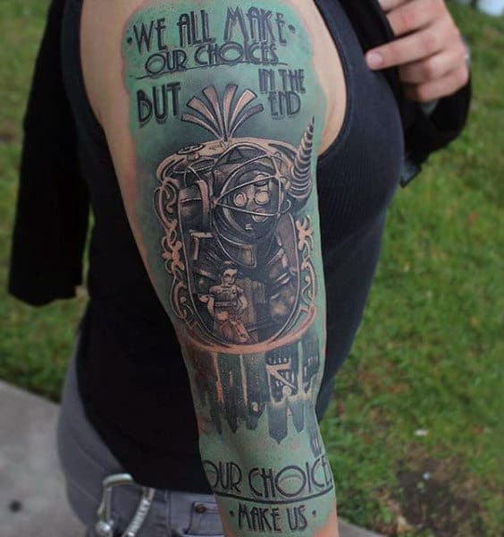 Male Gamer Tattoo Bioshock Arm Design Ideas