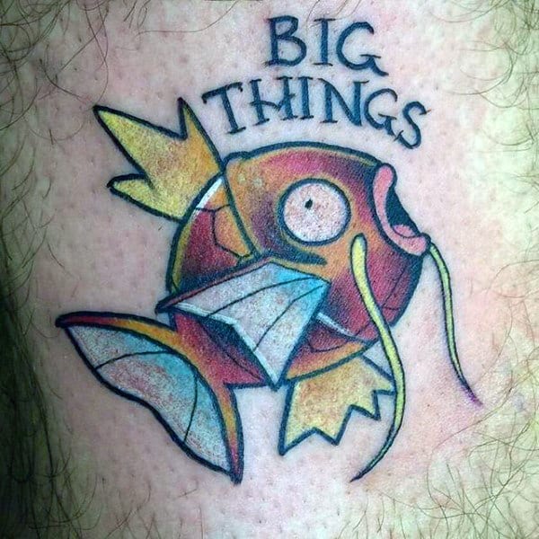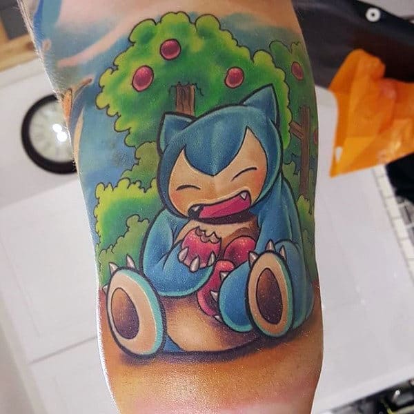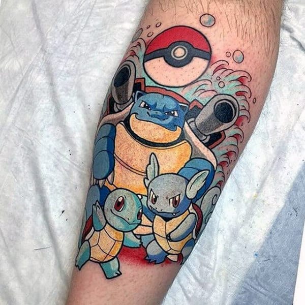 Some video games look visually more impressive than others. Pokemon is at the head of that pack, with a bestiary of hundreds of cleanly designed and richly colored characters that were made for tattooing. Your artist needs to make sure that the outline is a solid, cleanly applied black (usually quite thick in a way reminiscent of American traditional tattooing), and that the single fill color saturation is spot on. Bu utilizing such recognizable characters if one aspect is off, the whole image can be compromised.