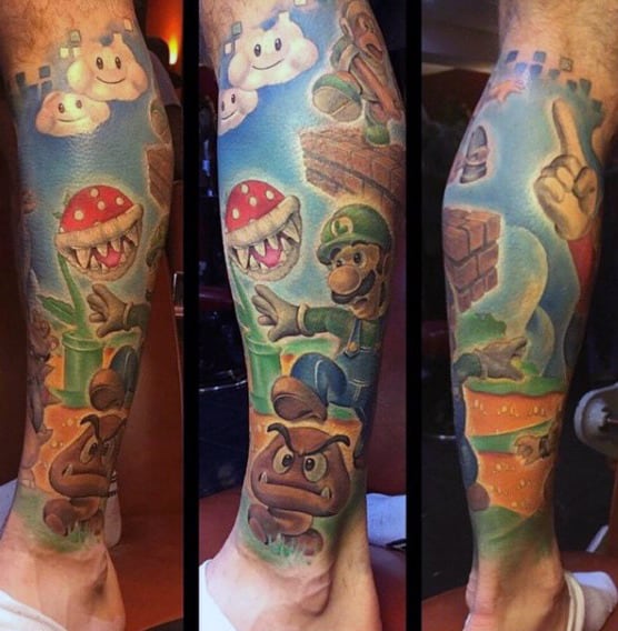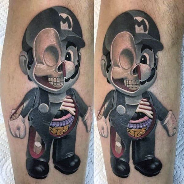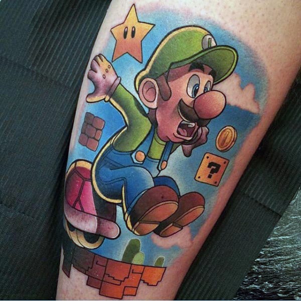 Guys Gamer Tattoo Super Mario Leg Design Ideas