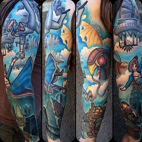 Mens Full Arm Sleeve Awesome Gamer Tattoo Ideas
