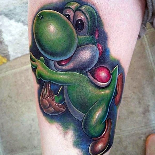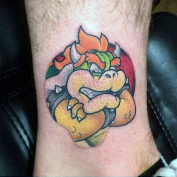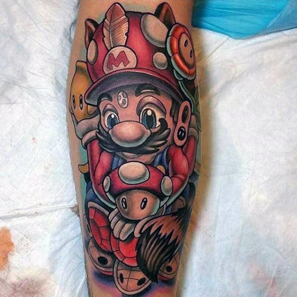 Mario With Turtle Leg Gamer Tattoo Designs For Men