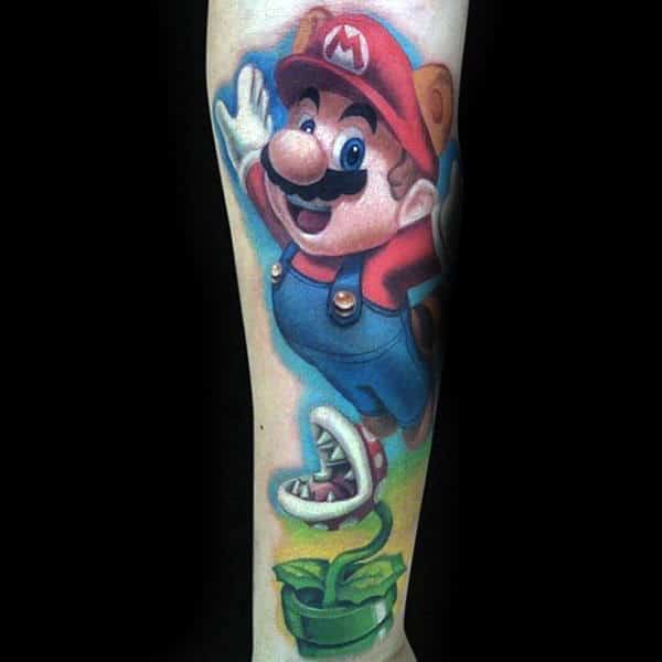 Incredible Gamer Mario Inner Forearm Tattoos For Men