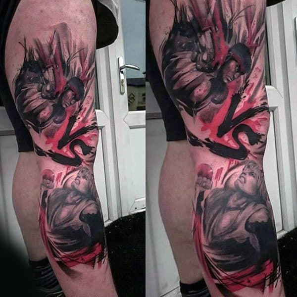 Guys Thigh Tattoos With Gamer Themed Design