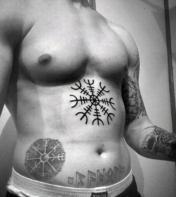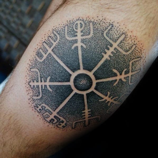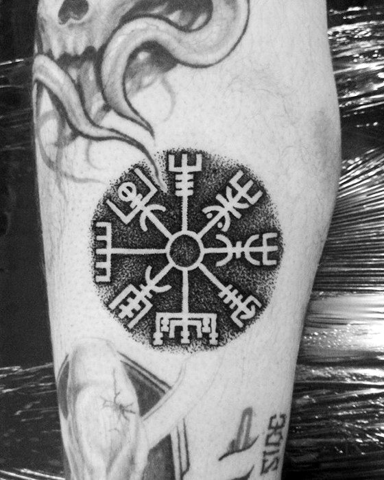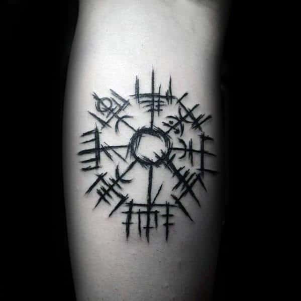Most double tattoos feature the Vegvisir along with the Aegishjalmur, or Helm of Awe, another powerful symbol of protection. Like the , the Aegishjalmur features eight staves that are also pointing outward, but with curved prongs instead of the square prongs of the Vegvisir.