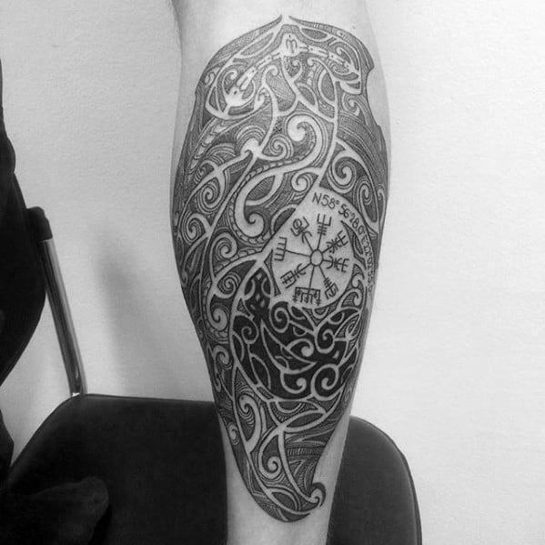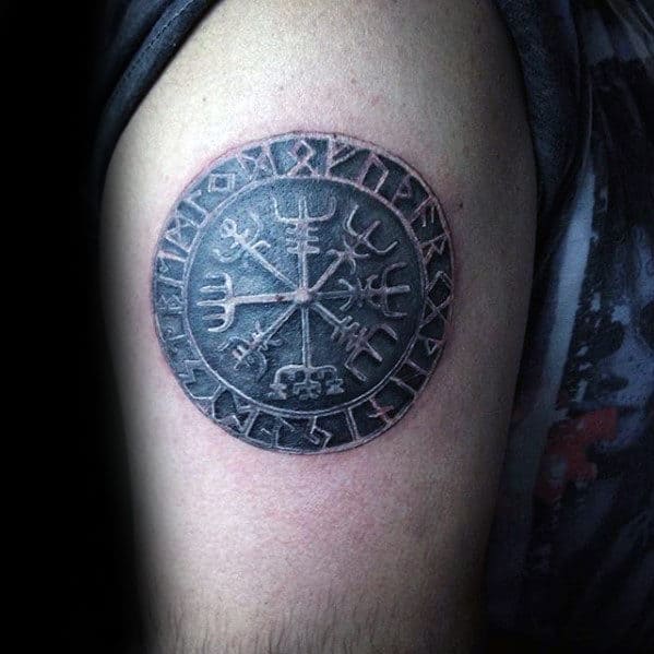 5. Black & Gray Viking Compass Tattoos